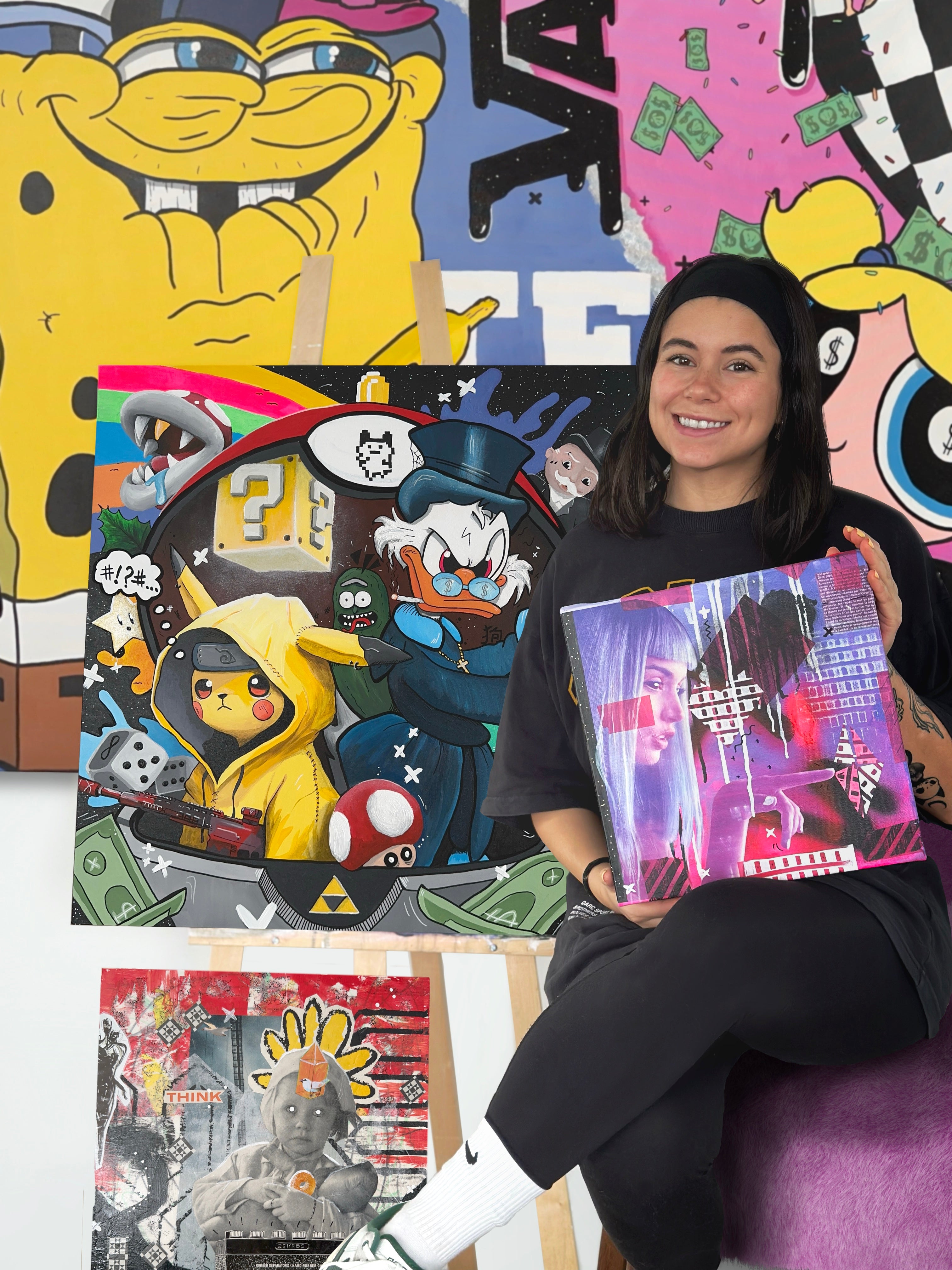 From vivid paintings to digital art, graphic design, and DJing, she's mastered the art of expression. Her work mirrors the colorful spectrum of her personality, but there's a hint of mystery and darkness beneath the surface, adding a unique edge.